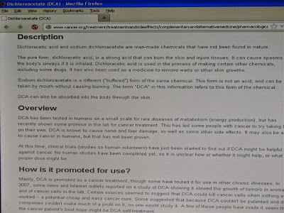 「ジクロロ酢酸」を英語で見たら、出てきたのが全米癌協会のこのページ