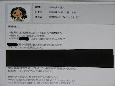 葉月がブログとコメントに書いたように、ゼオライトは「鉄や亜鉛を取り、アルミを人体に与えるものだ」というトンデモの嘘を言って、彼女にディトックス剤としてゼオライトを教えた私を恨むように仕向けたのではないか? それ以前から出ていた足の痙攣が「ゼオライトをやってから止まらない」と書いてきたが、それはゼオライトも 自分で人に勧めた酵素風呂も